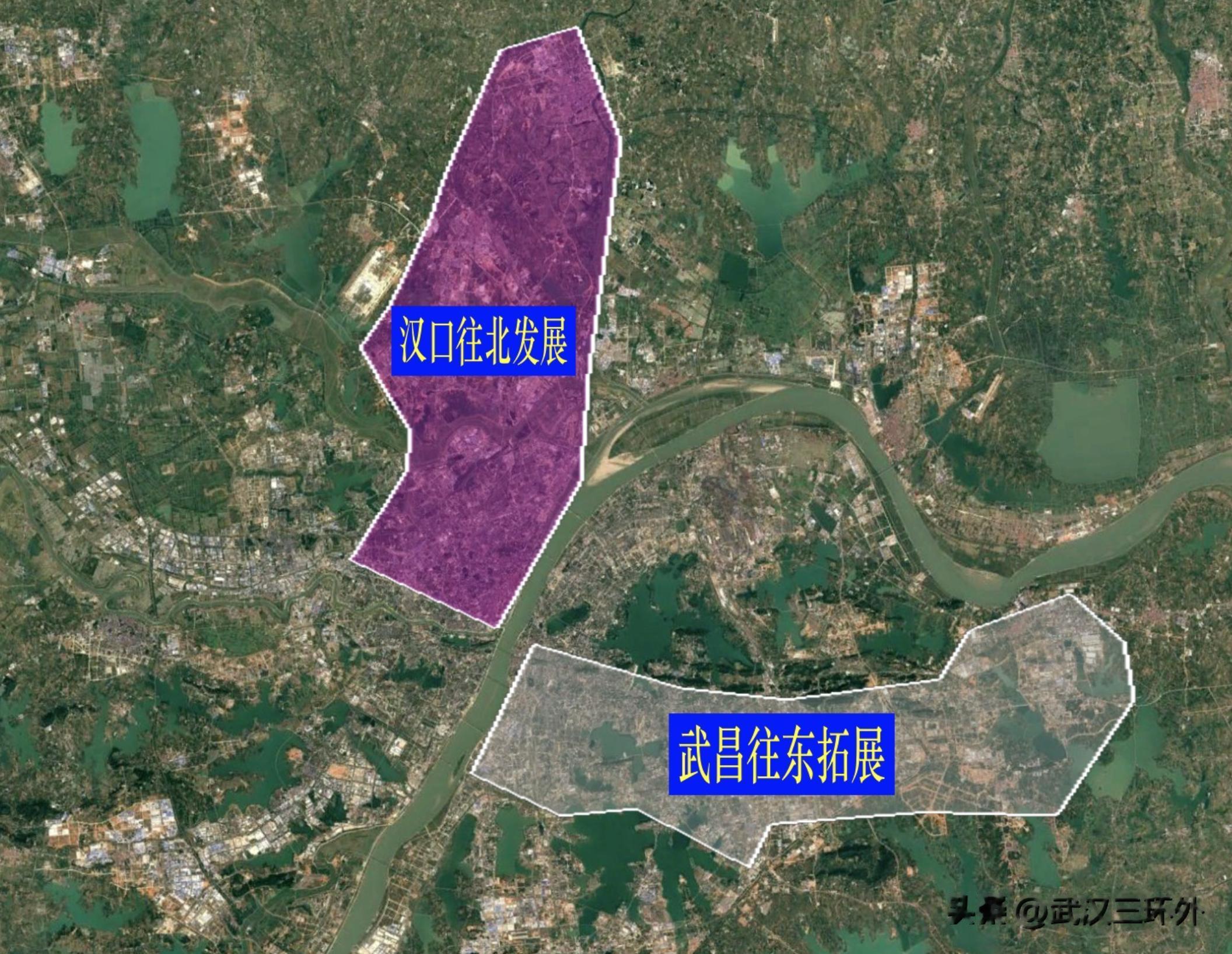 说句不夸张的,这就是汉口的“中轴北延长线”(下图为汉口从南往北的中轴线示意图)