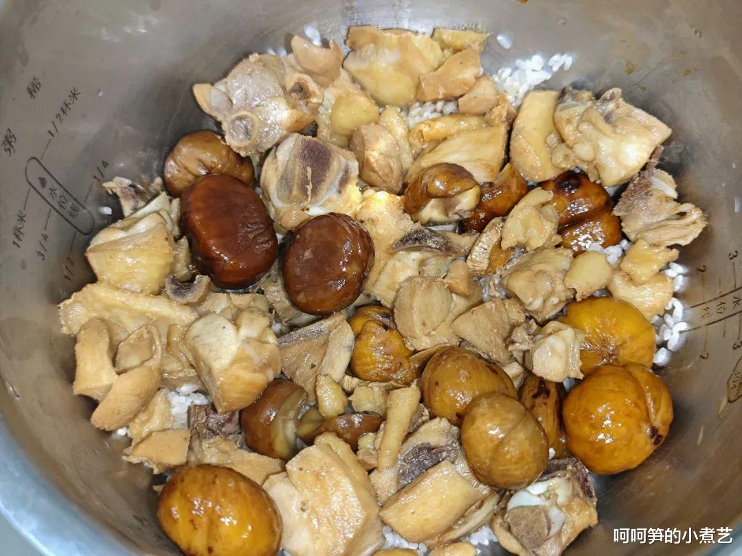 板栗很吸水,鸡肉会出水,所以不需要减少水的量。