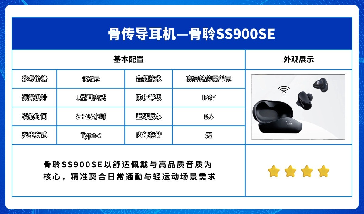 骨聆SS900SE兼具扎实技术实力与优质使用体验,是看重音质与无负担佩戴的通勤、轻运动用户的高端骨传导优选。