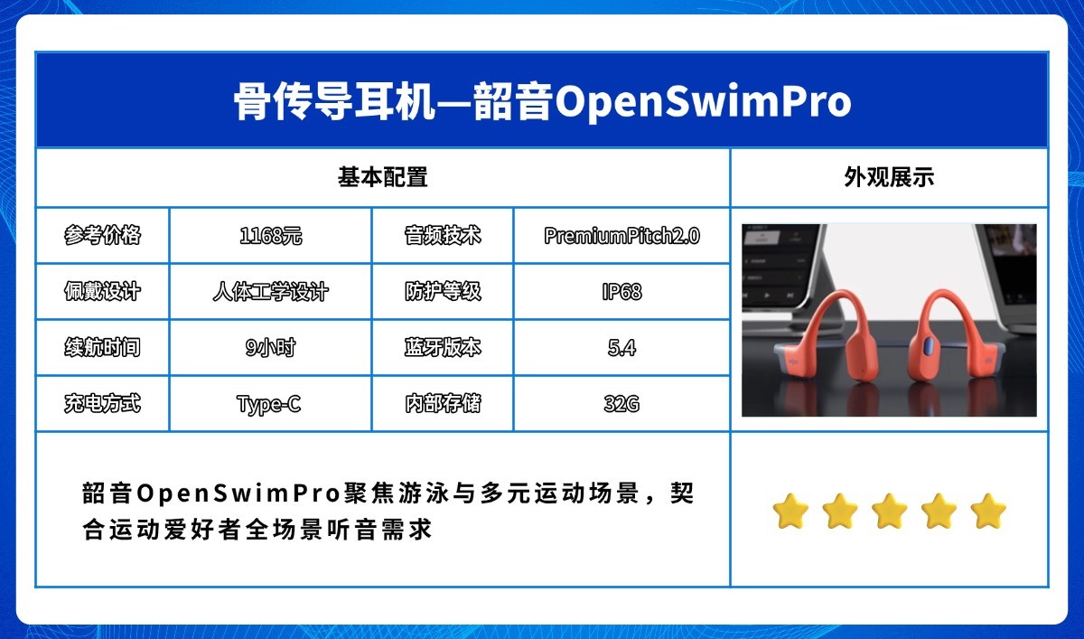 韶音OpenSwimPro聚焦游泳与多元运动场景,契合运动爱好者全场景听音需求。