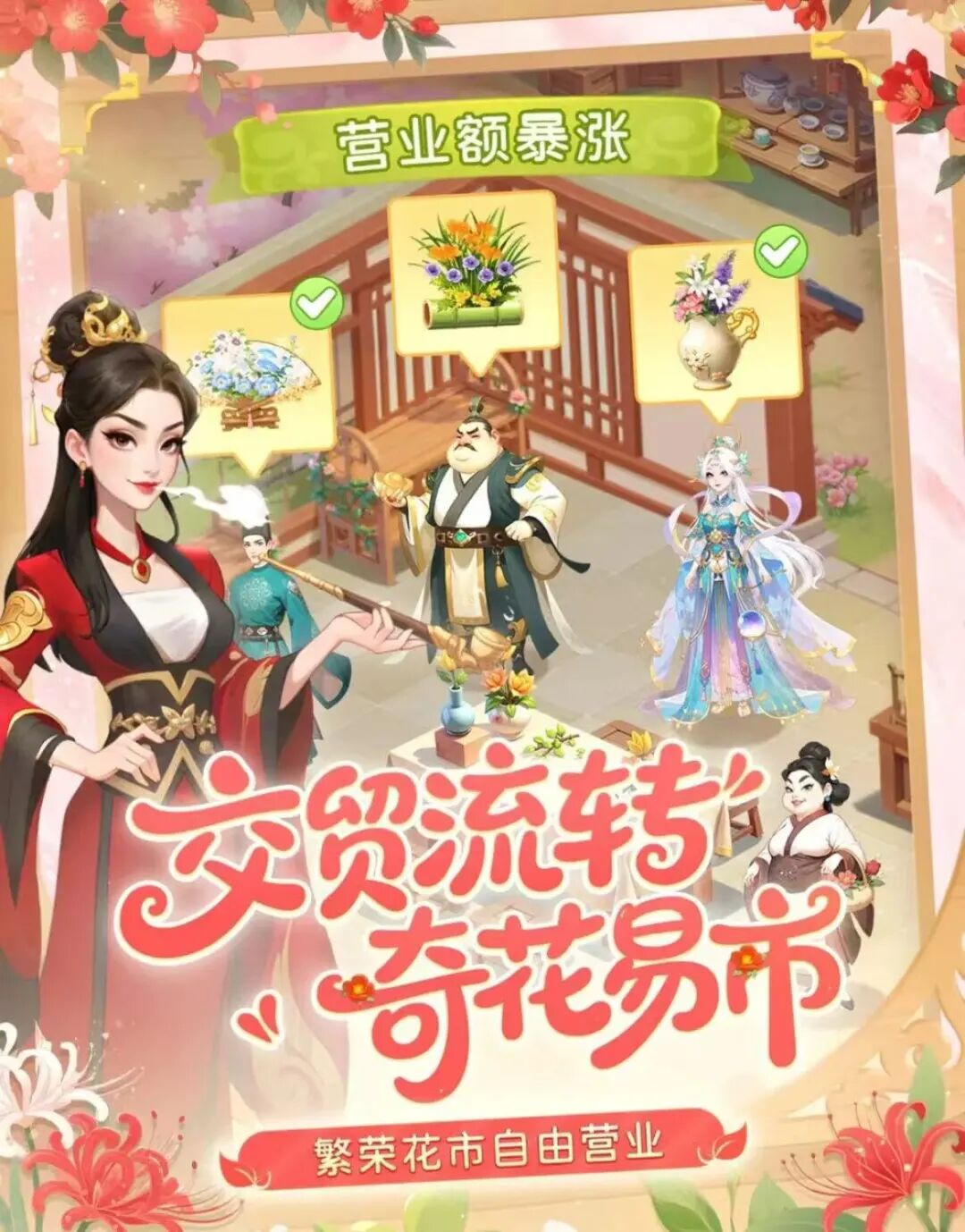 花架经营:始终在花架上陈列当前等级所能制作的、售价最为高昂的花卉。并且要确保在双倍收益的时间段内领取收益或者下架花卉。
