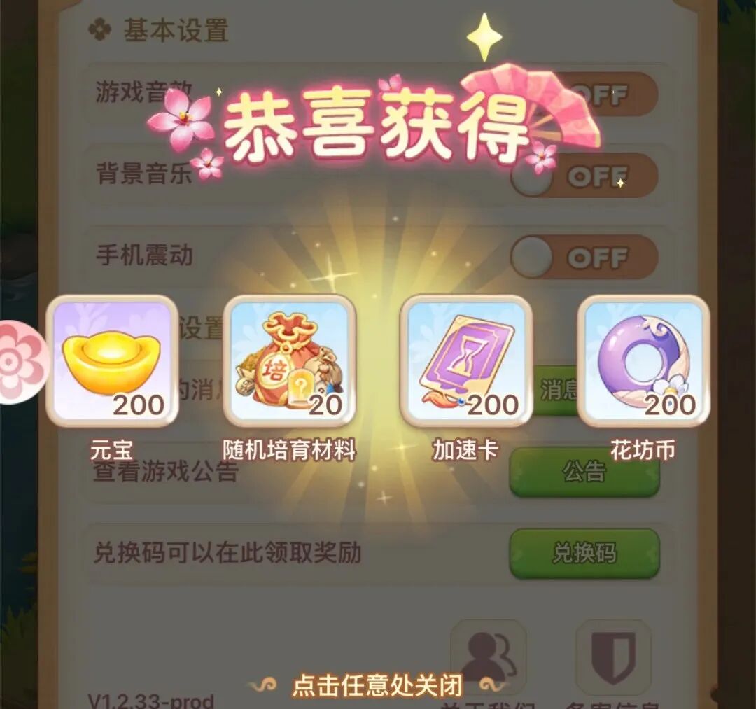 【花影流光】:兑换鸳鸯茉莉和赤焰火焰兰,培育完成后领取花瓶。