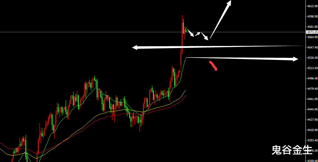 盘面上现在不要看技术了,因为全部都是看涨的,无非就是会在哪里涨,今日冲高回落,修正后,还会继续拉升,而4550就是最好布局的点位,当然前提是给到,如欧盘阶段还不能回落4550,则直接布局进去,目标看4600上方,不要问能看到哪里,现在高位是没有压力的,能到哪里,全看主力资金的力度;