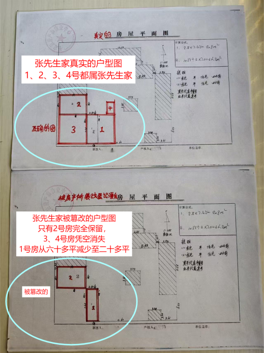 张某禄的系列抢占操作堪称步步为营:1989年办理房产证时,虚构宅基地面积,使自家院子与张先生老宅的2号、3号房屋重叠;1994年办理土地证时,虚构一条道路,制造两家宅基地已分隔的假象;2017年棚改时,再次虚构房屋面积(211.59㎡),骗取安置房。