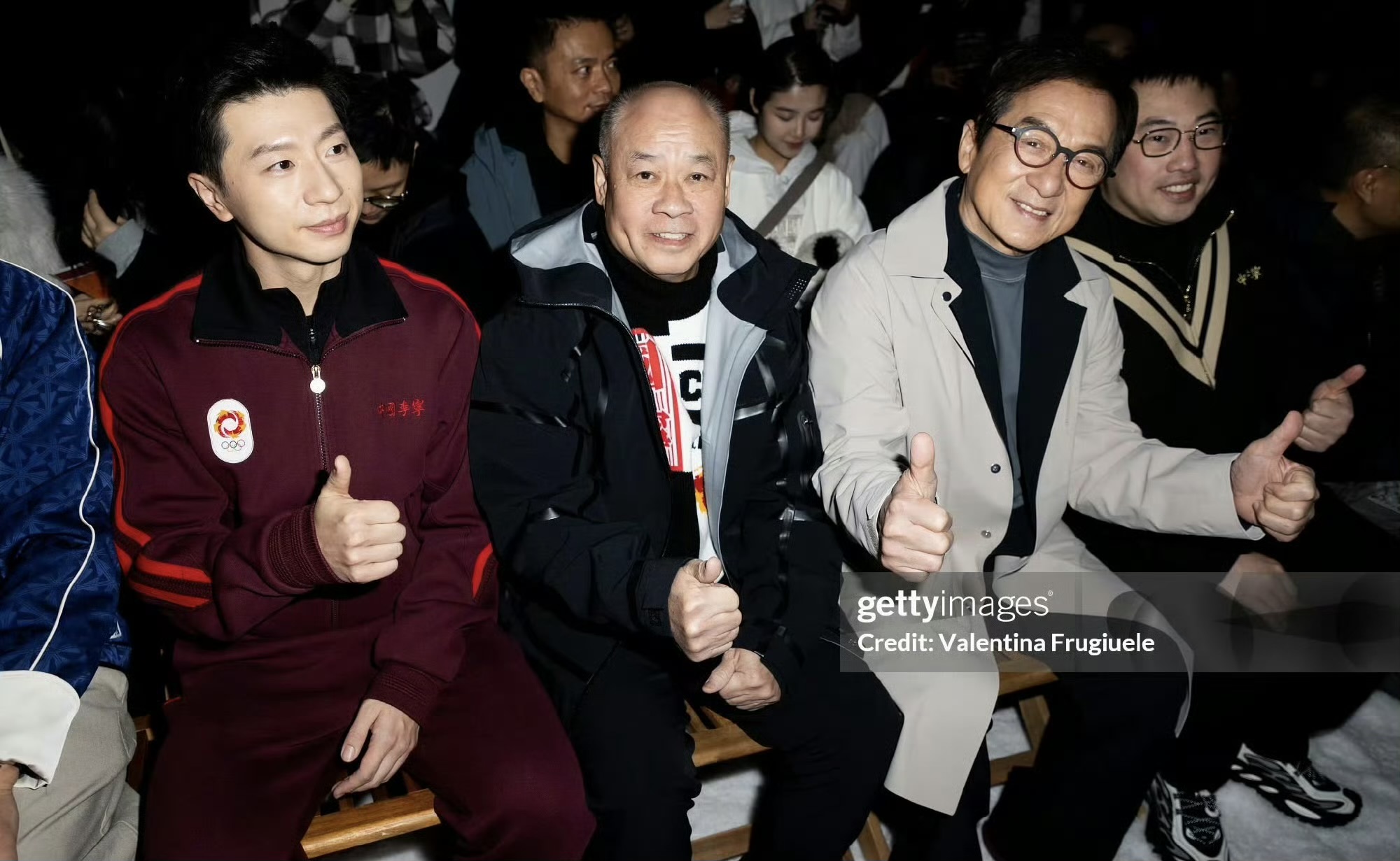 要说这事儿,还得从成龙大哥的造型说起。你想象中的大牌看秀,是不是得西装革履、珠光宝气?成龙偏不,他就穿了件灰大衣,里面配个蓝高领,身上没挂啥值钱玩意儿,手里倒抱着个圆滚滚的熊猫玩偶。这身行头,别说在米兰了,就算在咱家门口的商场,那也是标准的“中老年逛商场套装”。网友看了直呼,这哪是看秀啊,分明就是隔壁大叔误打误撞进了会场。