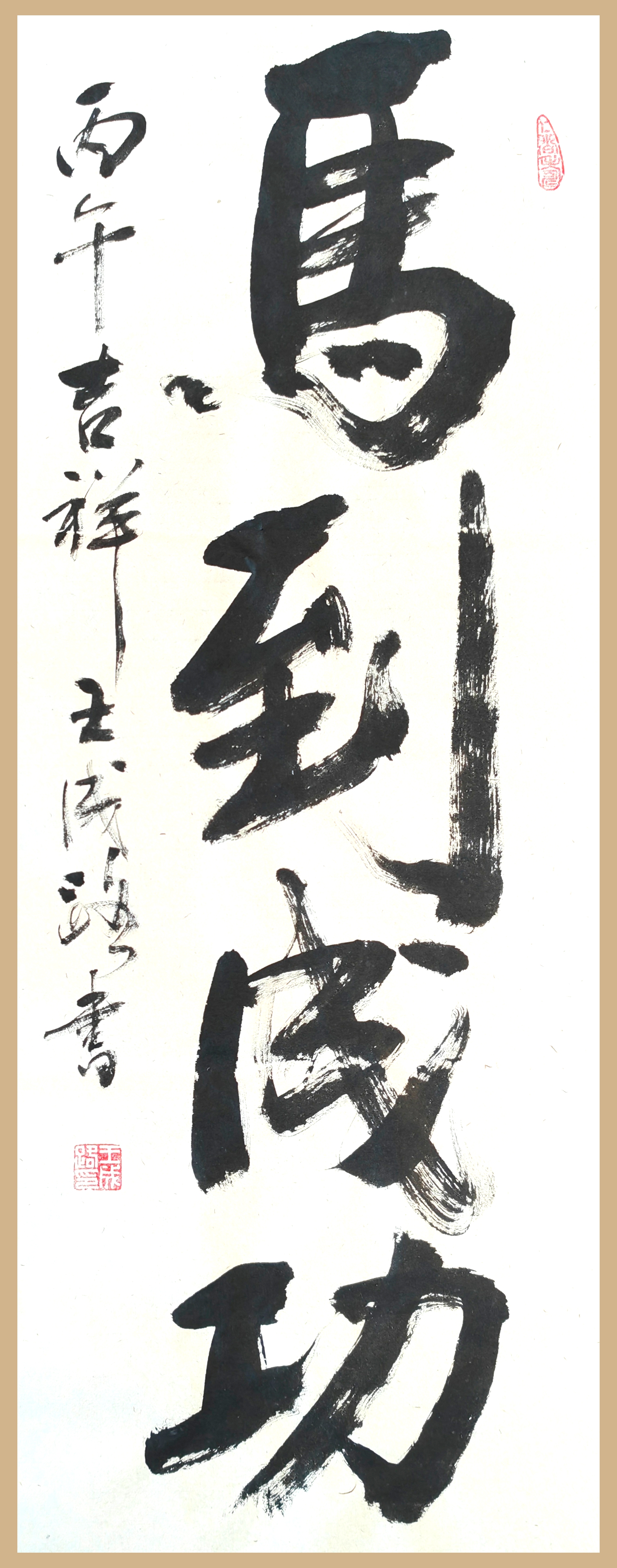 现在可写楷,行,隶,草四种书体,尤其善于写榜书大字。曾在市老年大学讲授《怎么创作和欣赏榜书》课程。曾写过两米正方《龙》字。榜书作品《和为贵》、《鸿运》、《和美》、《精气神》、《龙》、《道》、《博学》等九幅作品在国家版权局登记注册,证书为“国作登字,2018—f—00567534,王成路书法”。