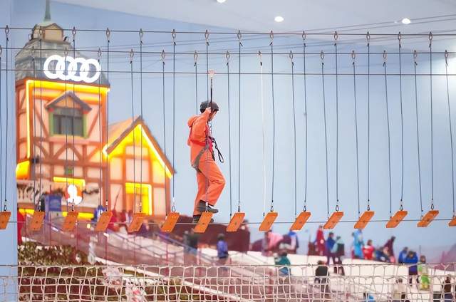 最具挑战性的莫过于 “飞跃冰川” 溜索。在高空横跨雪场,体验了“浅浅飞一下” 的失重快感,尽显勇气。