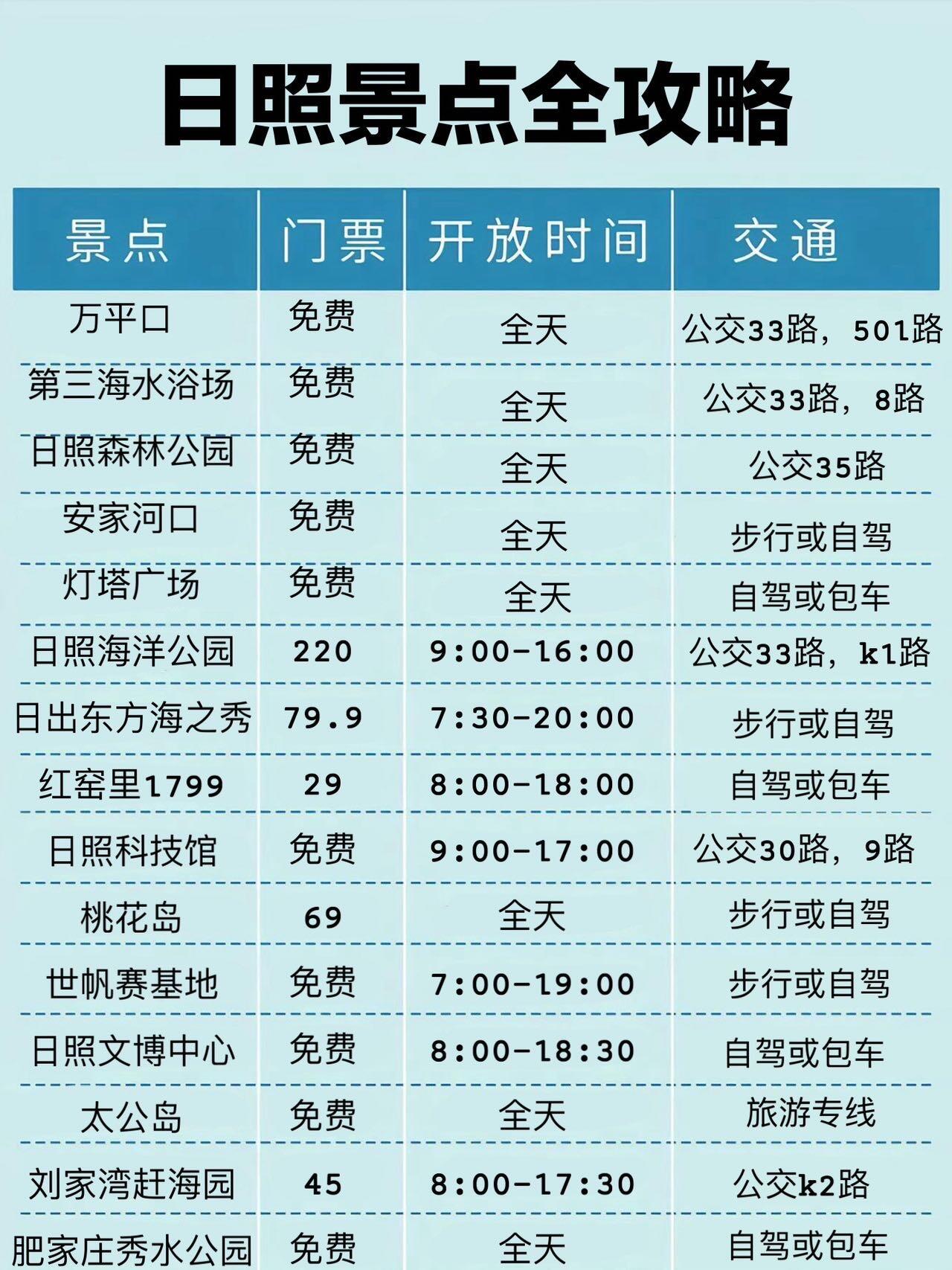 来日照旅行的宝子们,保姆及攻略给到你们了