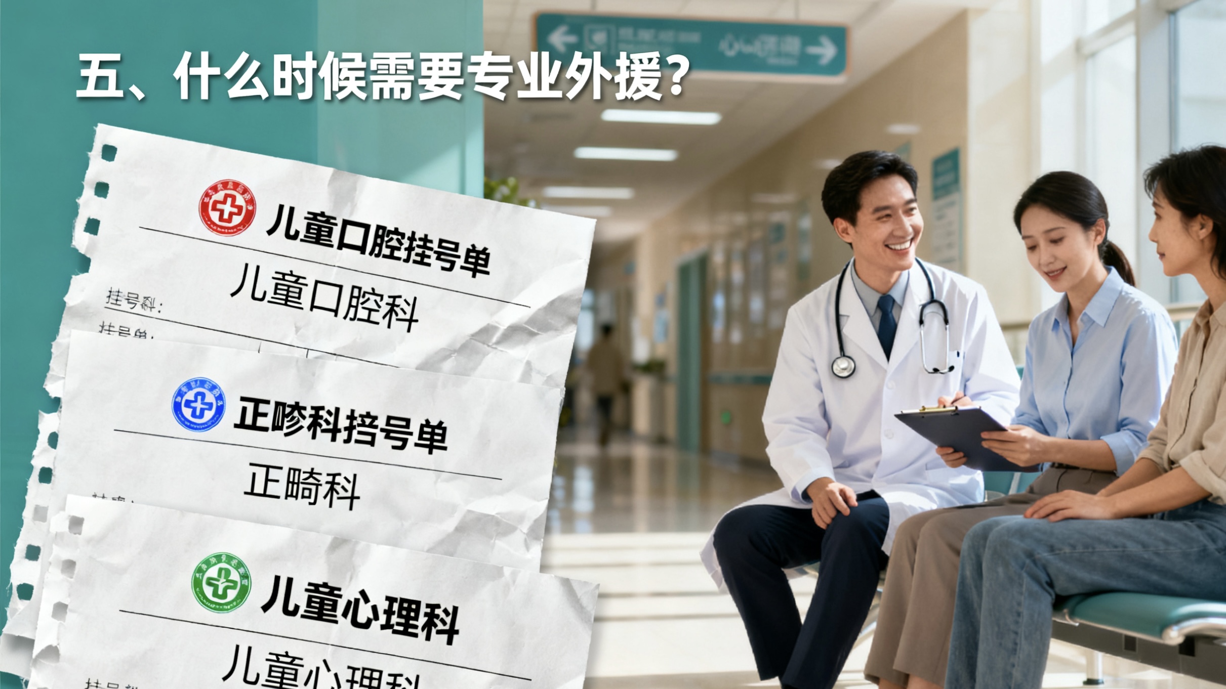 挂号顺序:儿童口腔科→正畸科→儿童心理科。医生+心理师+家长三方联盟,90%的孩子能在半年内“毕业”。