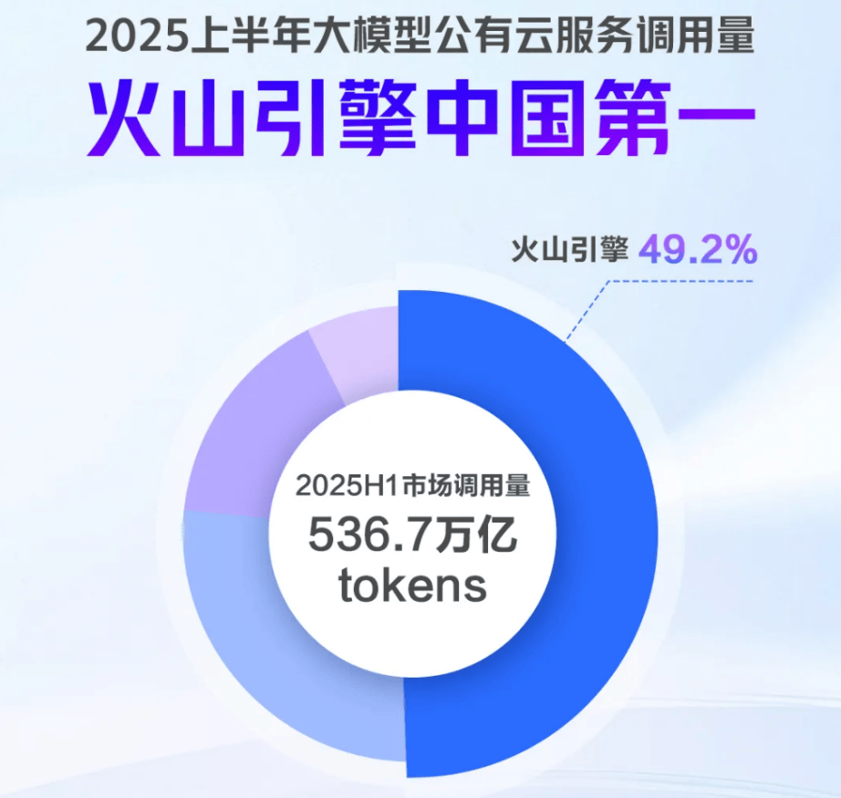 9月19日,国际数据公司IDC的《中国大模型公有云服务市场分析,2025H1》报告发布,IDC宣布,2025年上半年,中国公有云上大模型调用量达536.7万亿tokens。以该口径统计,火山引擎以49.2%的市场份额位居中国市场第一。而阿里云、百度智能云市场份额分别为27%、17%,位列第二、第三位。