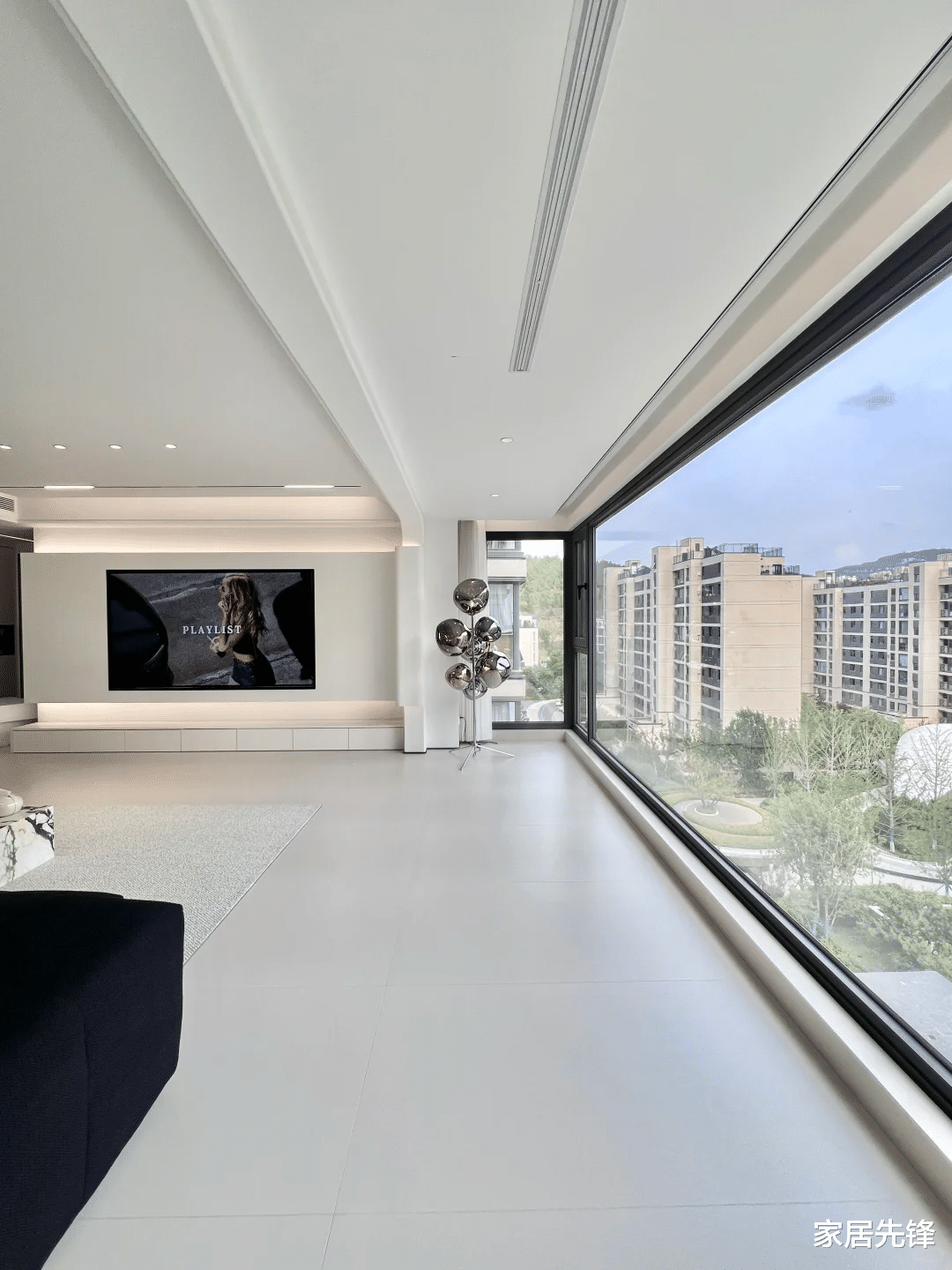 如果你家空间面积大或者是大平层的话,可以采用超大落地窗的设计,这样的设计在年轻人当中还是非常流行的,颜值高而且还高级。