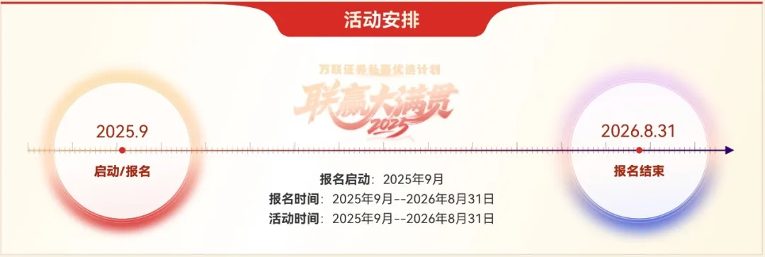 本次“联赢大满贯”私募优选计划评选周期为1年,自2025年9月起至2026年8月止,报名通道同步开启。