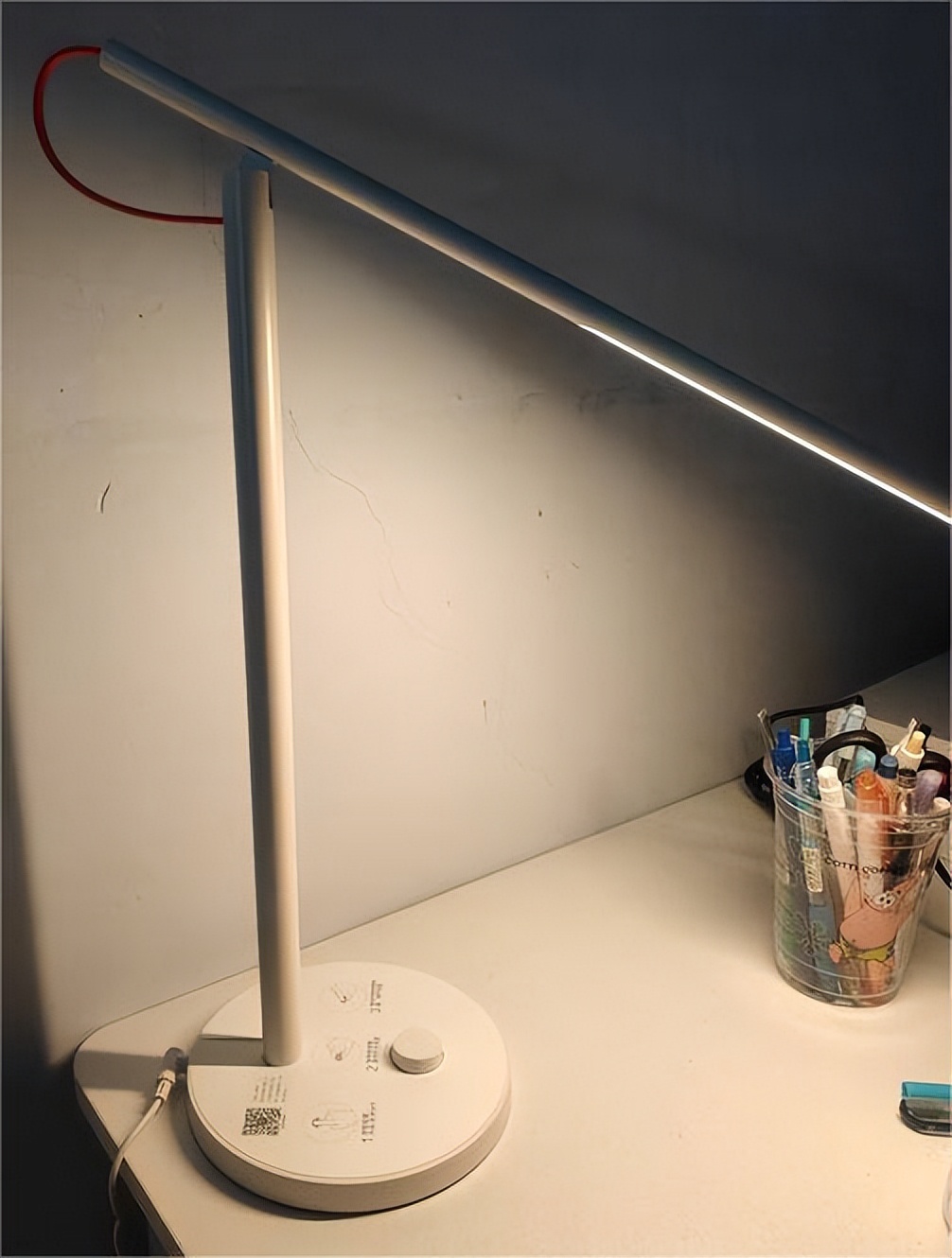 它底座通过了6°的倾斜测试且采用的铝制的灯体,整体比较稳重不容易摇晃。但美中不足的是台灯仅支持上下角度调节无法左右旋转,可能需要移动台灯位置才能改变照明区域。