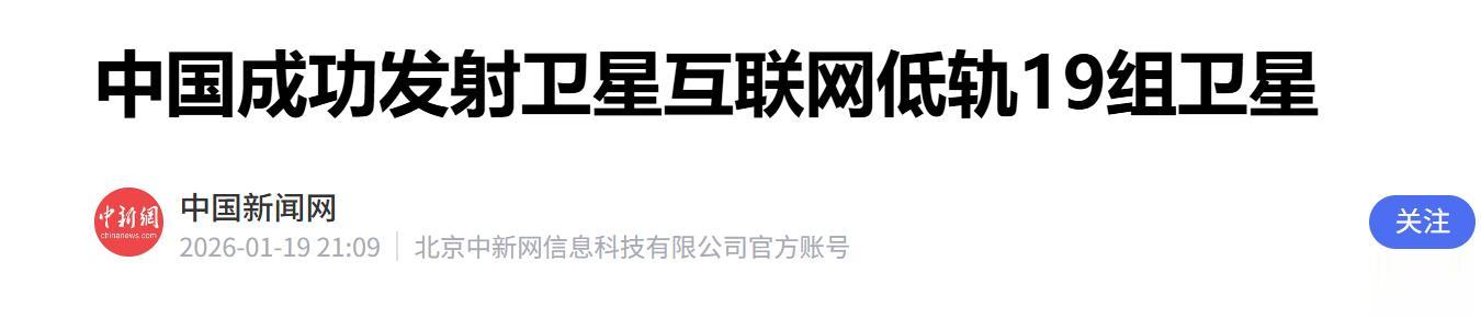 把卫星互联网低轨19组卫星稳稳送上了天,所有卫星都精准进入预定轨道,发射任务圆满成功。