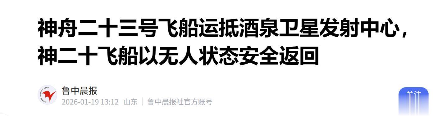 第三大捷报是1月19号神舟二十三号飞船已经运到酒泉发射中心,提前进入发射前程序了,比原计划早了整整两个月!