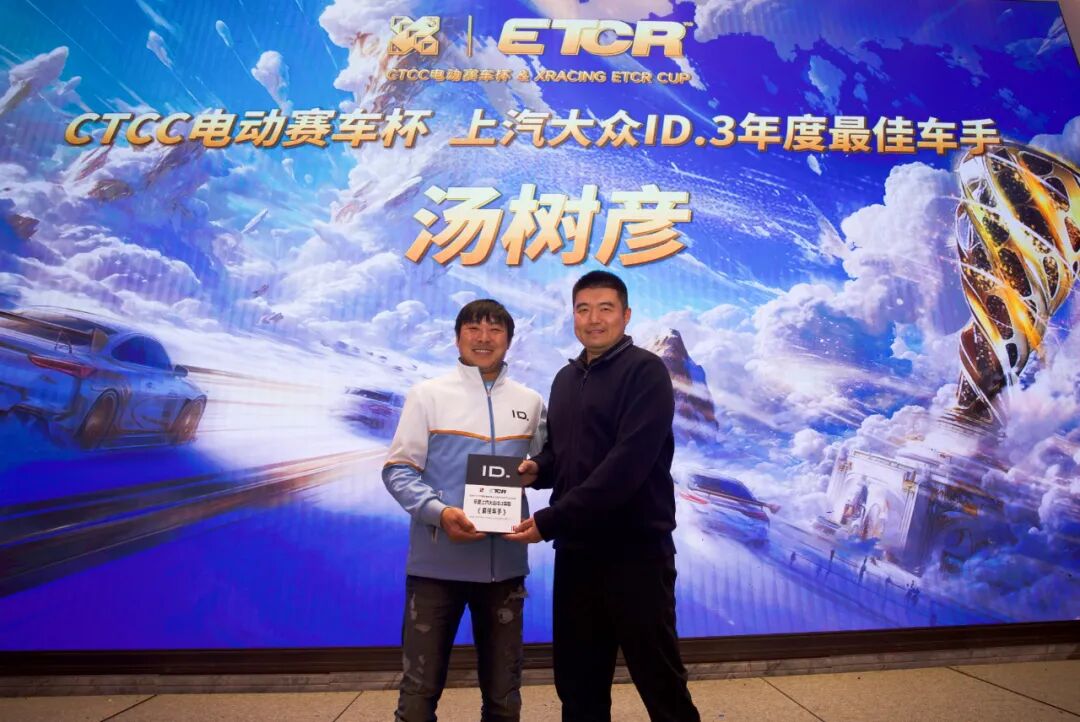 上海天马赛车场总经理陈晖为年度上汽大众ID.3车型最佳车手颁奖