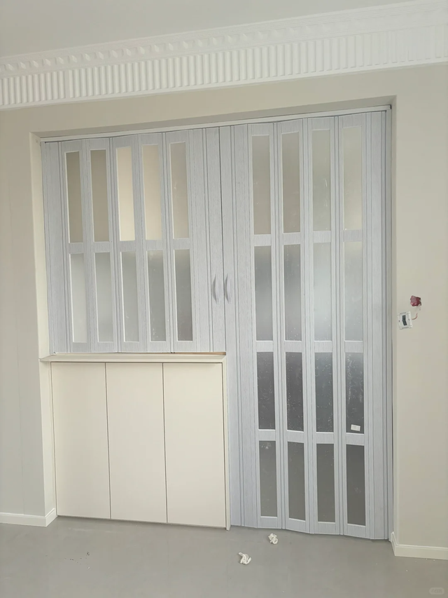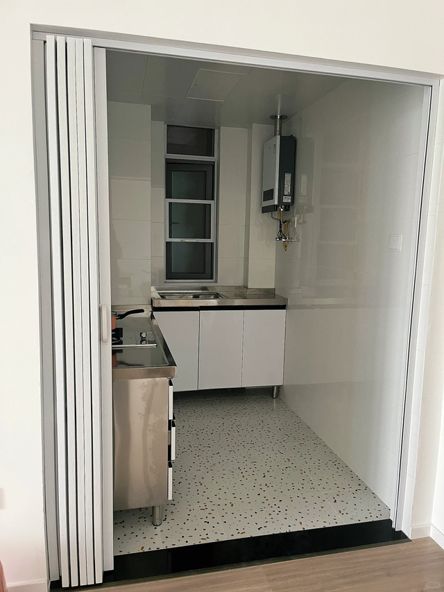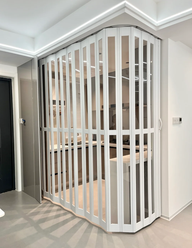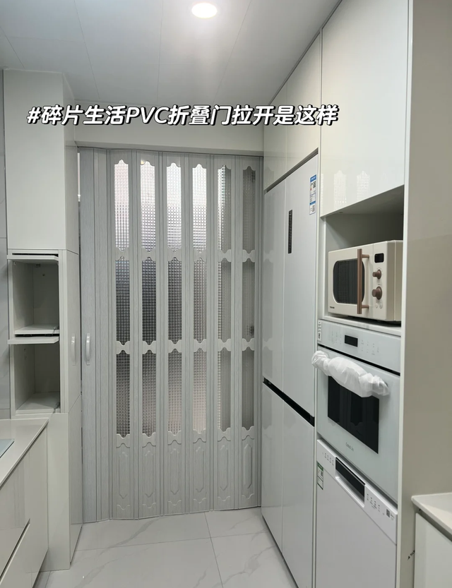 而且有些小伙伴,既想要开放式厨房,但是又必须安装厨房门,(做到厨房密封,才能安装天气然),就可以选择这样的PVC折叠门,检查时展开,不用时,收纳,超级实用!