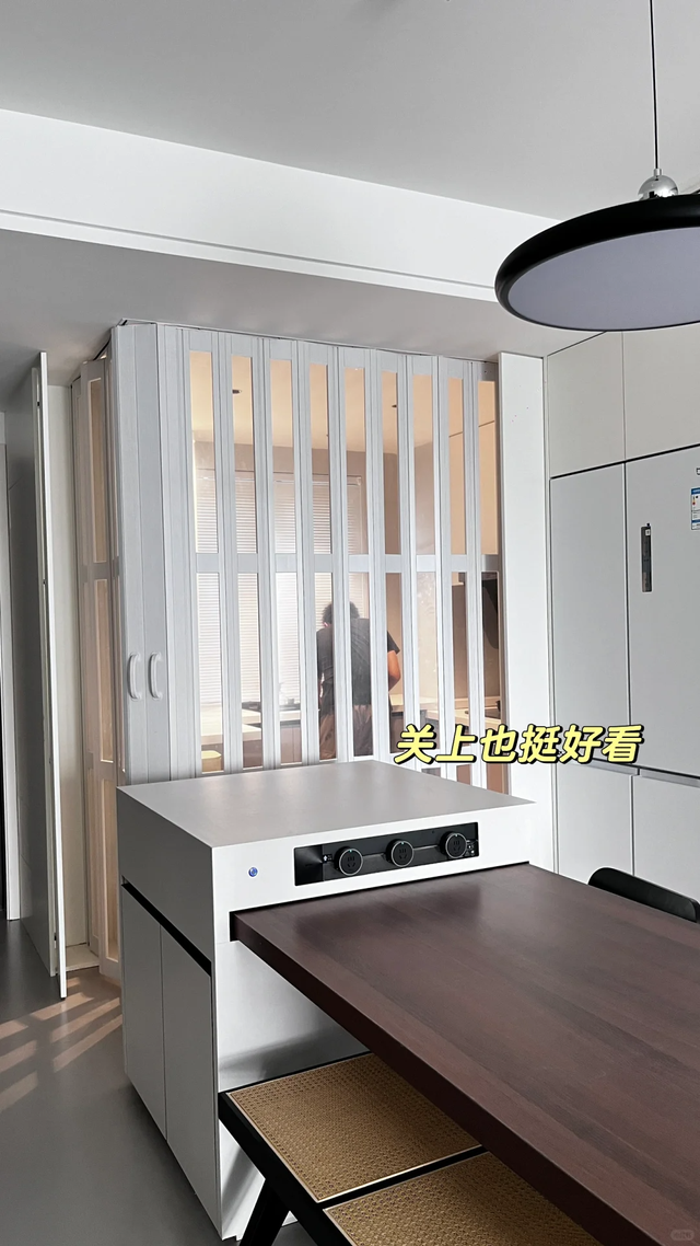 关上之后,看着是不是完完全全就变成了一个开放式的厨房,但是打开之后,就变成了厨房门,是不是超级厉害!