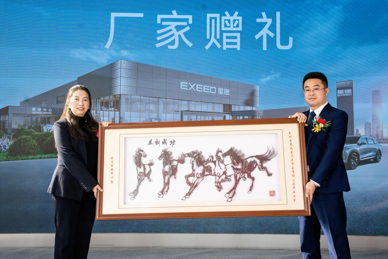 庆典现场氛围热烈隆重,EXEED星途品牌领导、甘肃天晨之星汽车销售集团董事长、总经理、兰州星辰之星体验中心负责人、当地主流媒体嘉宾及首批意向车主齐聚一堂,共同见证这一荣耀时刻。动感十足的开场表演点燃全场热情,寓意着新店开业的蓬勃生机与美好前景。随后,品牌领导与经销商负责人发表致辞,深入阐释星途品牌的发展理念与西北市场布局规划,赢得现场阵阵掌声。