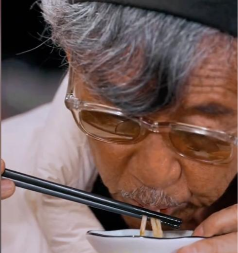 不过该有的礼貌一点没少。吃完后,他看向旁边的店员,轻轻点了点头,示意“味道不错”。