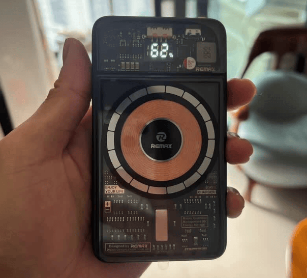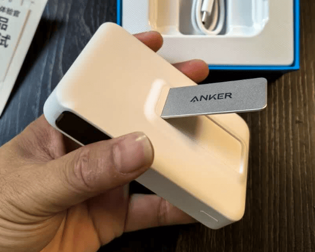 这款充电宝在外观上采用了卡片式的设计,还做了一个背部自带支架的设计,使得充电宝不仅是手机支架,也是桌面无线充,可供用户多样化使用。此外,在它的侧面有LCD彩色显示屏,可实时显示剩余的电量,使用起来比较省心。在电池容量上,这款搭载10000mAh容量的锂聚合物电池,还内置了新一代Qi2充电模组和智能控温技术,更适配与苹果手机的充电算法,可以不伤害手机电池的情况下进行低温快充。同时,这款支持iPhone13-15系列手机的磁吸充电模式,但需要升级到相应的系统才可显示充电动画。总结来看,这款充电宝的外观设计提升了实用性,但给手机充电时充电宝自身的电量消耗较快,存电量有偏差的情况。