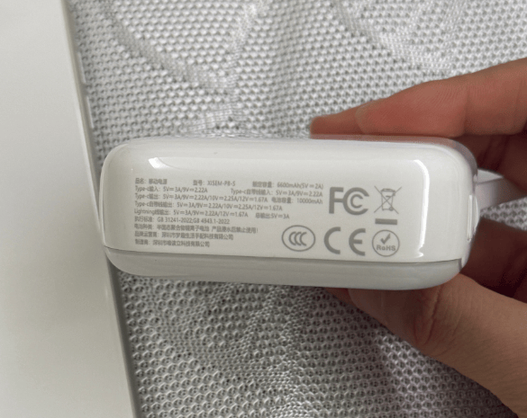 一款符合规定的充电宝应该在机身上具备产品名称、电池容量、额定输入/输出功率、制造商信息、安全认证标识等信息,如果充电宝没有这些标识信息的呈现,大概率是一款不合格的充电宝,不建议用户购买。