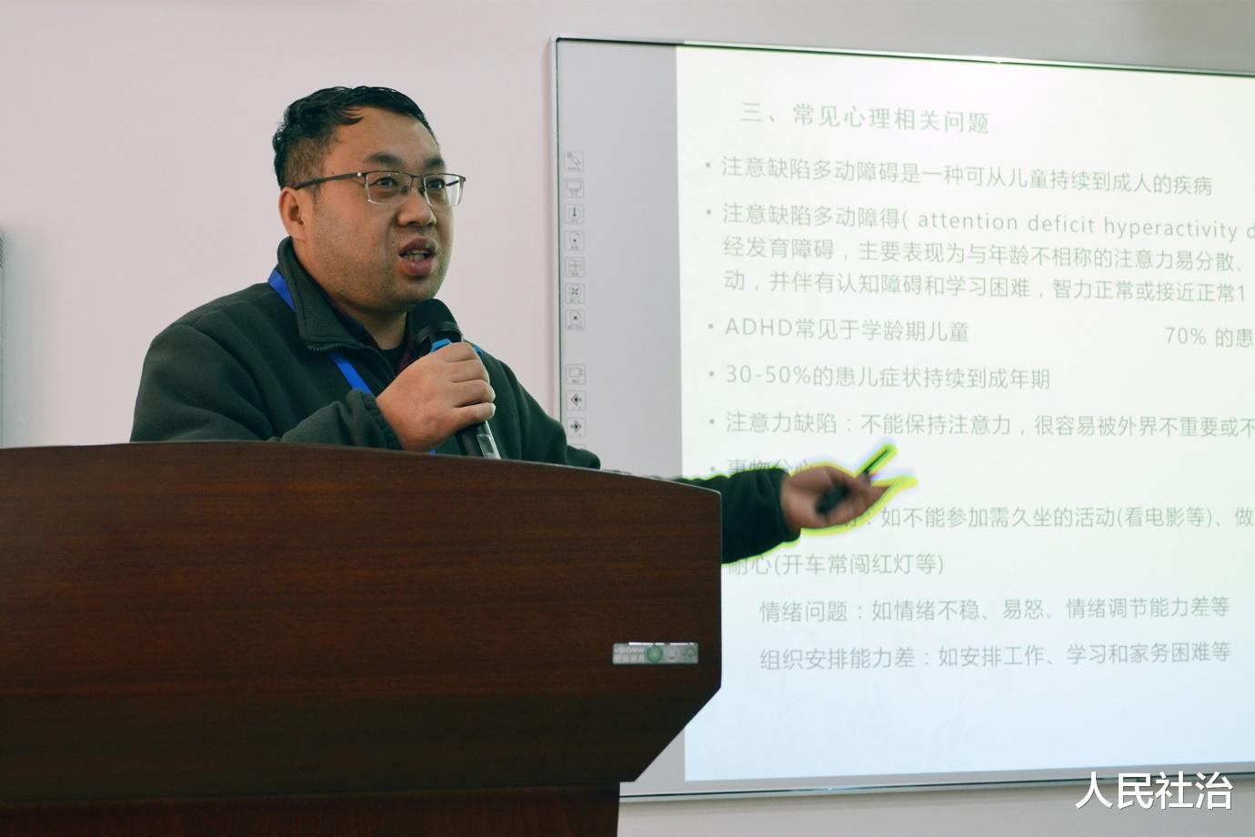 随后,他从四个方面进行了培训:首先他对成华区“心理十条”进行了解读,传达了近期市区两级关于未成年人心理健康教育方面的政策;然后,冯老师对如何识别心理问题,以及学生常见的ADHD和抑郁症进行了详细讲解;随后,冯老师对转介流程以及危机干预的误区进行了科普。