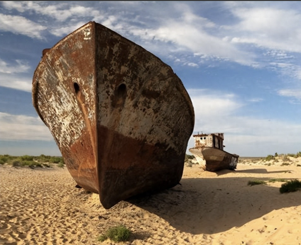 南咸海的主体部分彻底干涸了,变成了一片面积甚至超过一些欧洲国家的巨大新沙漠——人们给它起名阿拉尔库姆沙漠。