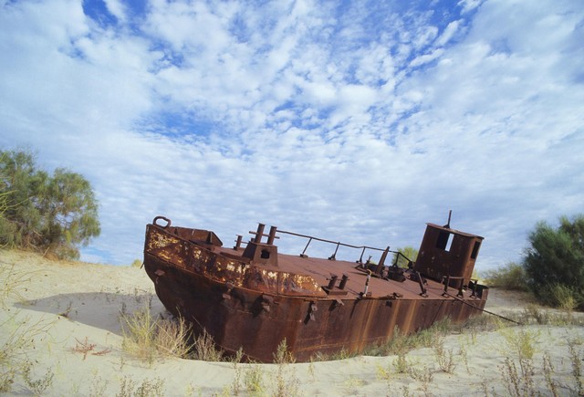 如果你现在驱车前往乌兹别克斯坦西部的穆伊纳克,你的导航会显示你正在穿越一片名为咸海的蓝色水域。
