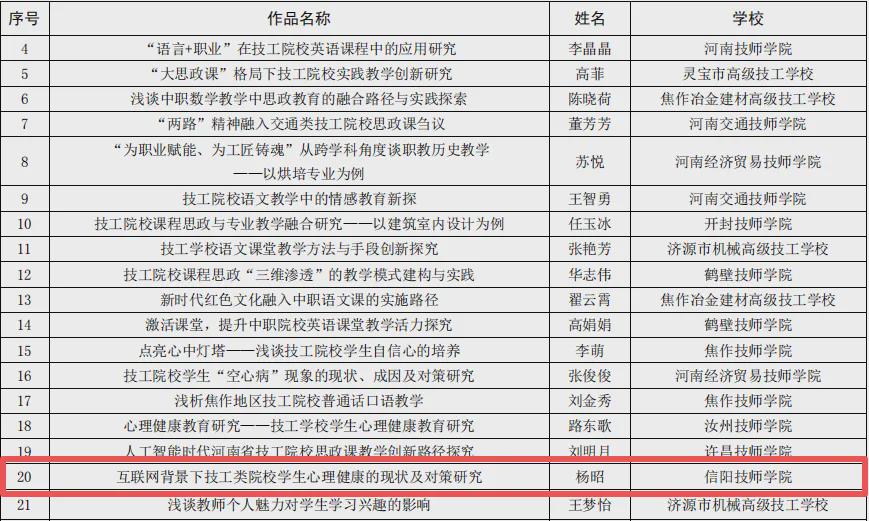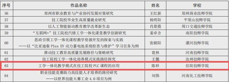 此次评选活动,信阳技师学院共在三大类项目中获奖6项,其中优质课1项、教学设计及课件制作1项、优秀论文4项。这些成绩的取得,既是获奖教师个人努力与智慧的结晶,也是信阳技师学院长期以来重视教学改革、强化教研团队建设、持续推进教师专业发展的成果体现。