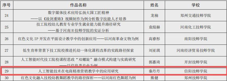 在优秀论文评选中,信阳技师学院教师立足教学实践,聚焦教育改革与专业发展,研究成果丰硕。黄宇婷老师荣获二等奖;秦丹丹、杨昭、陈梓老师分别荣获三等奖。这一成绩充分体现了信阳技师学院教师在教育教学研究、理论结合实践方面的思考深度与学术素养。