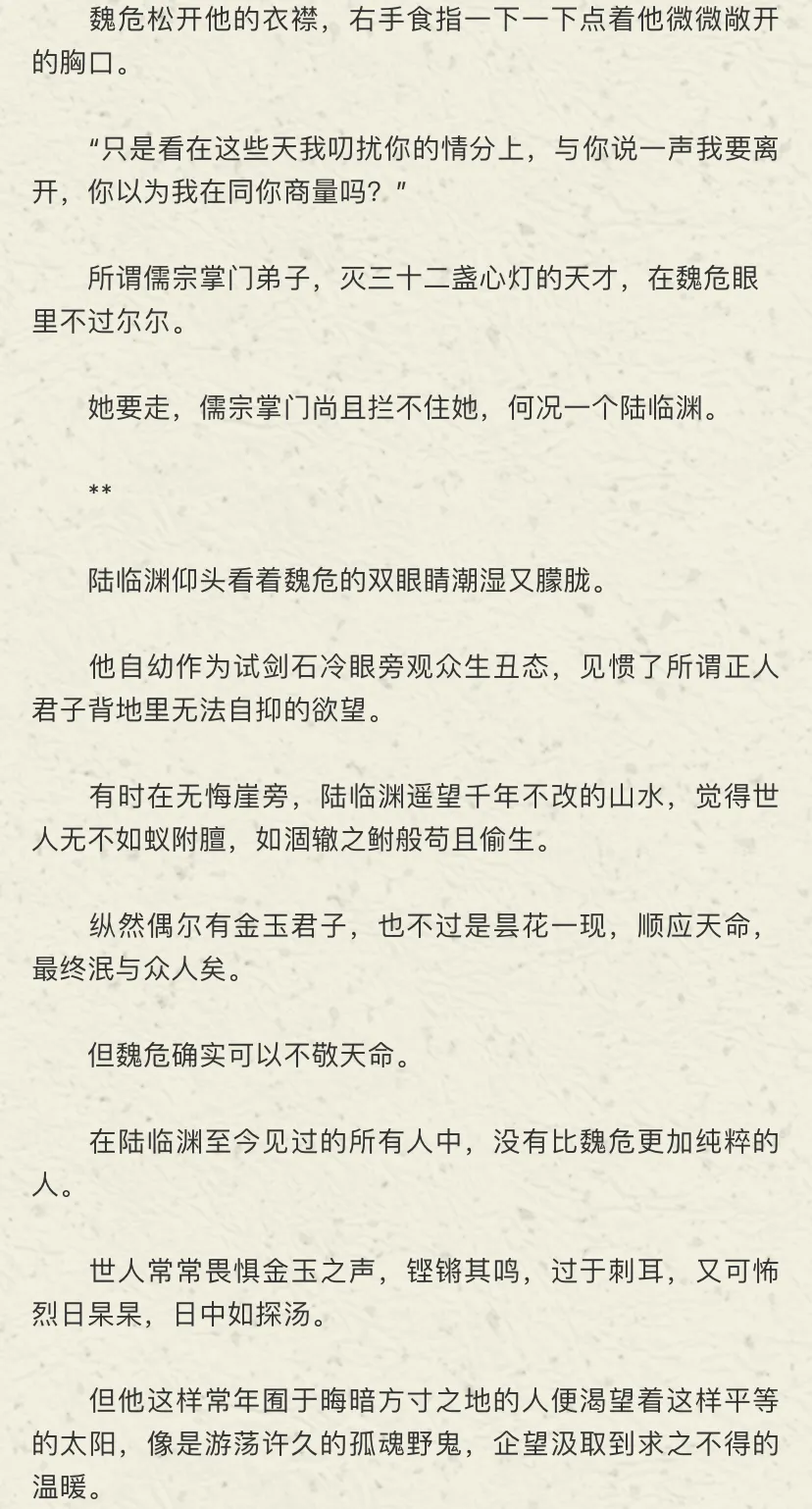 最后还想说我很喜欢作者对女主的一个描写是,女主一直有看破事情本质的能力,因为自小生长环境的原因,她可以说是一个本自具足完满的人,她能拨开云雾见青天直指事情真相,一直坚守本心