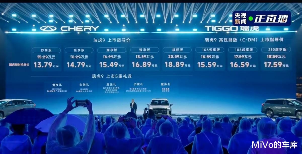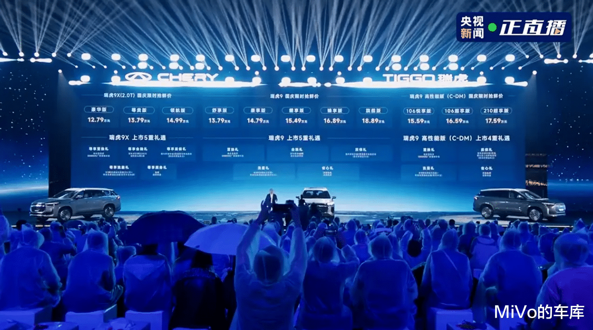 国庆限时福利:价格与礼遇双重惊喜发布会同步公布三款新车的国庆限时抢鲜价与购车礼遇,以高性价比直击用户需求:瑞虎 9X 起售价 12.79 万元,购车可享 20000 元厂家置换补贴、8 万元 36 期 0 息金融方案、整车终身质保(首任非营运车主)等五重礼遇;瑞虎 9 起售价 13.79 万元,除 20000 元置换补贴、整车终身质保外,还提供 60 期超长低息贷款方案;瑞虎 9 高性能版起售价 15.59 万元,享有 10000 元置换补贴、整车及三电终身质保等四重礼遇,多重福利大幅降低用户购车门槛,提升产品竞争力。