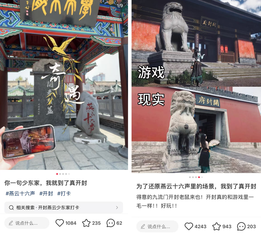 不少玩家前往开封旅游后,在小红书、B站等平台发布游玩体验与联动感受,形成丰富UGC内容生态,吸引更多路人关注。