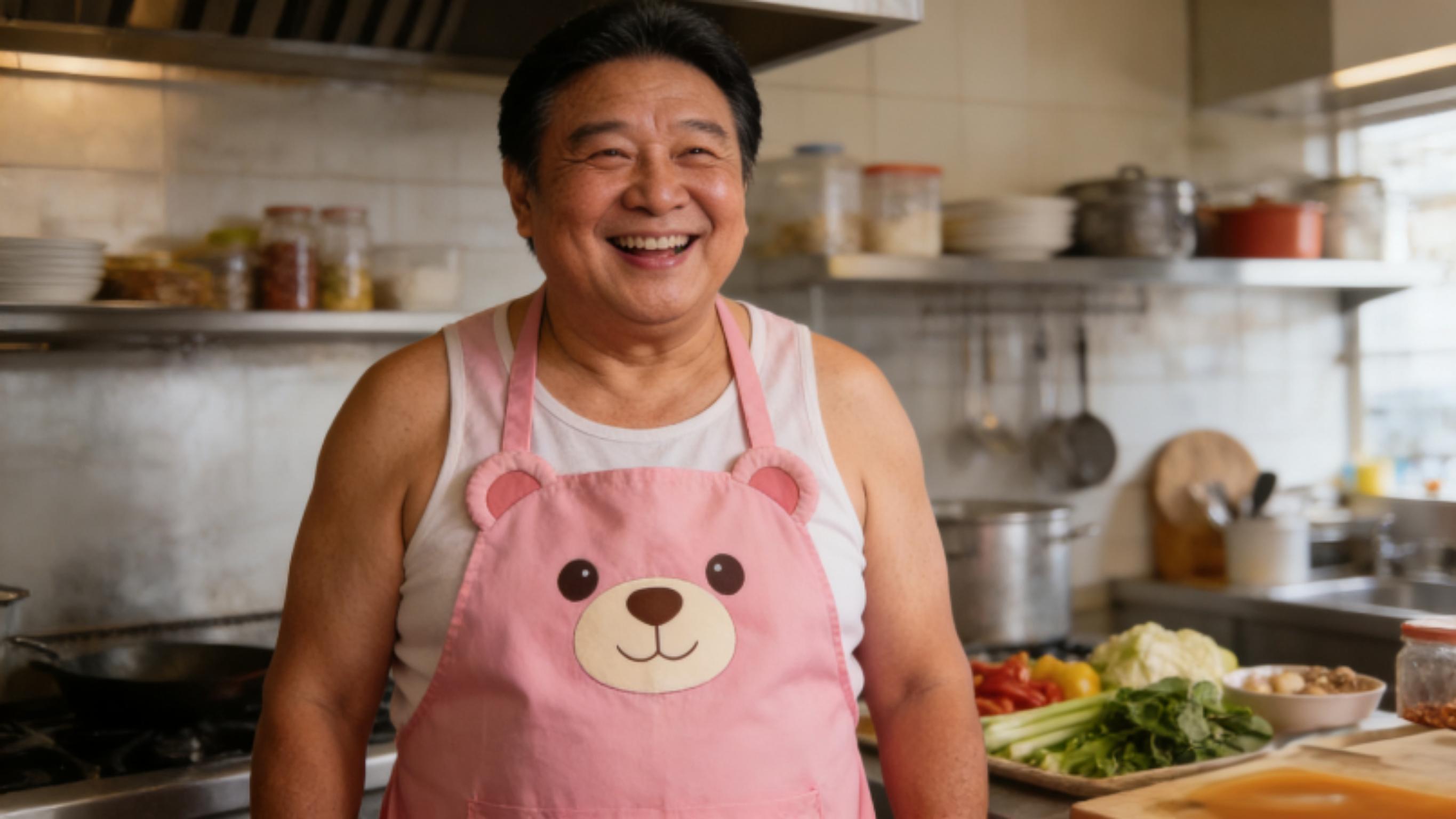 从那以后,轮椅就成了洪金宝的日常标配,2025年2月、7月仍多次被拍到坐轮椅出行,8月返乡时拄拐行走也步履蹒跚。可今年6月开通短视频账号后,老爷子却频频带来“惊喜”:教做红烧肉、展示咏春拳、坐着轮椅探店逛吃,甚至在汕头拍摄生腌视频时,穿着粉色小熊围裙站了近半个小时,结束后累得汗流浃背却笑容满面。近期更有网友拍到他与武术大师切磋太极,步伐稳健、马步扎实,这才引发了“神秘液体”的猜测。