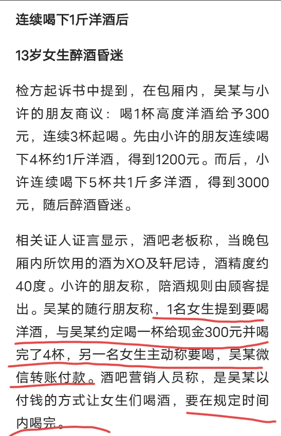 对于这个案子,我觉得我们可以从三个角度来探讨一下。首先,家庭教育在这个事件中扮演了关键角色。小姑娘的家庭教育明显出现问题,家长对女儿的行踪以及交友状况摸不清底细,进而使女儿卷入了酒吧这个成人聚集地,并且涉足了与其年龄不符的饮酒游戏。身为家长,应当更为严格地监督子女的成长,教给他们如何分辨是非以及何谓不良影响。再者,酒吧的管理问题也值得深究。首先,酒吧本不该向未满18周岁的青少年销售酒水,这是法律明确规定的。其次,酒吧有义务管束客人的行为,阻止出现逼迫他人喝酒的场景。回顾这次事件,发现酒吧不仅违背法律规定让未成年人喝酒,甚至还默许了客人拿着钱去逼迫小姑娘喝酒,这样的行为无论是对客人还是小姑娘而言,都是非常严重的伤害。最后,我们还应当重视对未成年人的保护问题。当 13岁的小许在酒吧饮酒过度后,不仅没有得到及时救治,反而在互联网上遭遇了大量嘲笑和羞辱。