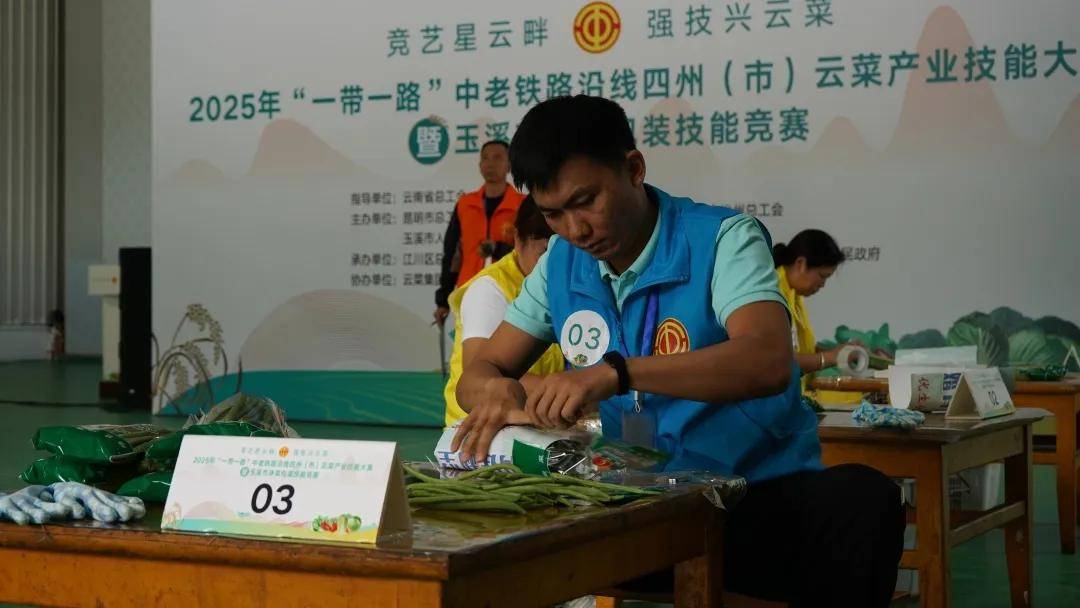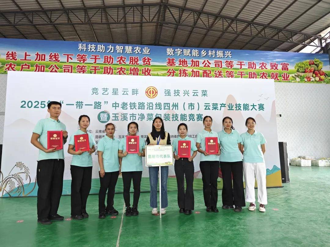 10月16日至17日,2025年“一带一路”中老铁路沿线四州(市)云菜产业技能竞赛在玉溪市江川区隆重举办。晋宁区总工会高度重视、精心筹备,选拔辖区内昆明大润兴万家贸易有限公司6名优秀职工组成参赛队,代表昆明市总工会出征云菜产业技能竞赛,与“一带一路”中老铁路沿线四州(市)36名云菜产业工人同台竞技,一展昆明市代表队的职工风采。