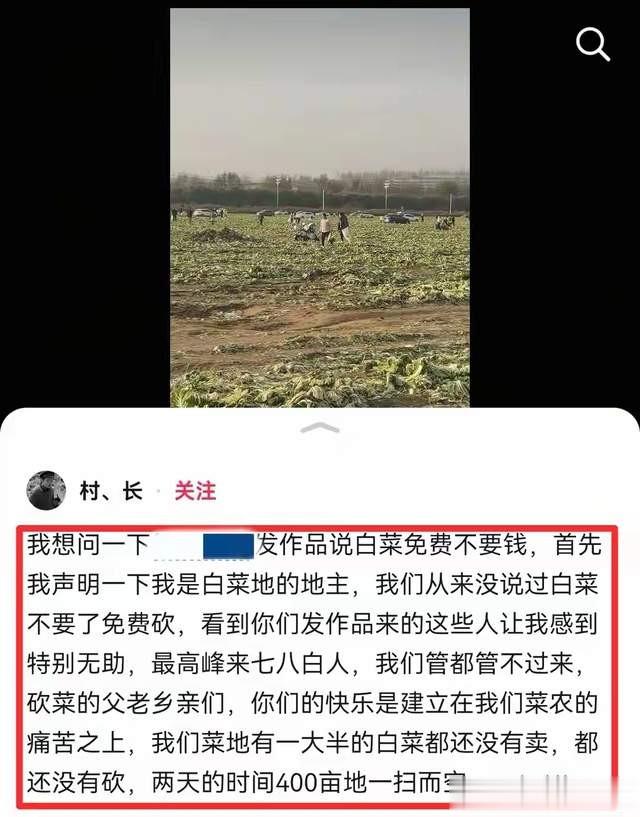 这些人看到这个媒体发布的不实视频,蜂拥而至菜农白菜地,令局面一发不可收拾。