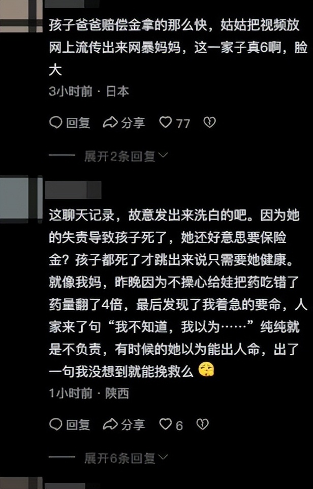 这些证据一曝光,之前骂得最凶的网友才恍然大悟,原来自己被孩子姑姑的片面之词误导了,纷纷开始向这位母亲道歉。可舅舅接下来曝出的另一个细节,更是让全网网友炸了锅。他说,孩子11号去世,13号还尸骨未寒的时候,孩子的爸爸竟然拿着学校给孩子买的保险单,迫不及待地询问怎么分钱。