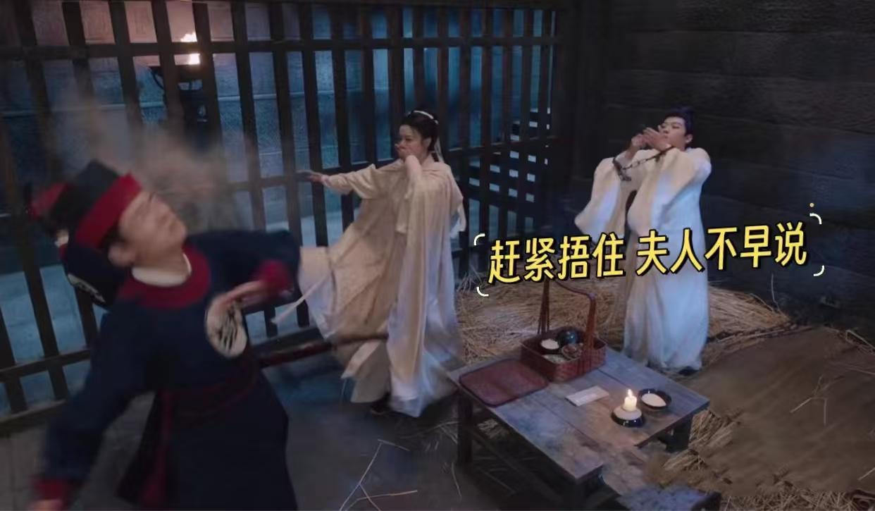 柳眠棠和崔行舟从大牢里跑出来,两人靠着墙壁,紧张气氛和帅气姿势到位。