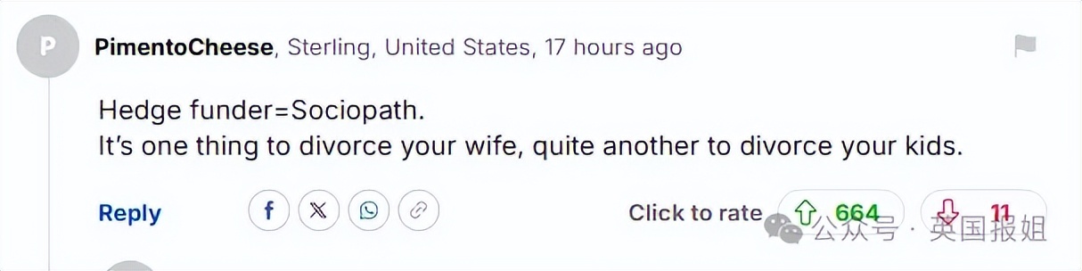 “对冲基金经理=反社会人格。和妻子离婚是一回事,和孩子断绝关系又是另一回事。”