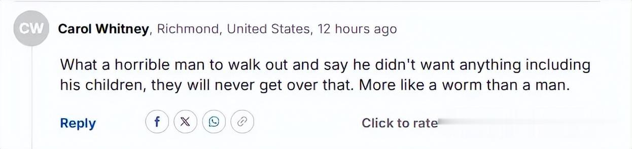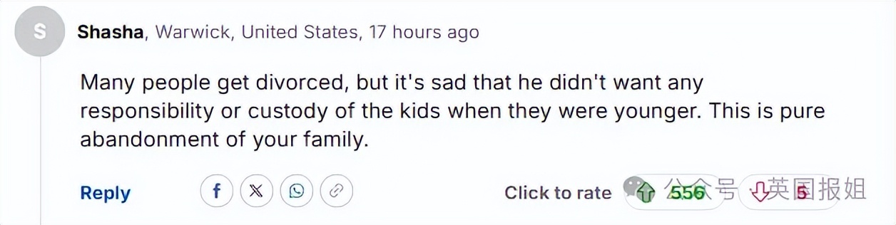 “离婚很常见,但令人难过的是,他当年对年幼的孩子既不负责任,也不想要他们的监护权。这完全是对家庭的抛弃。”