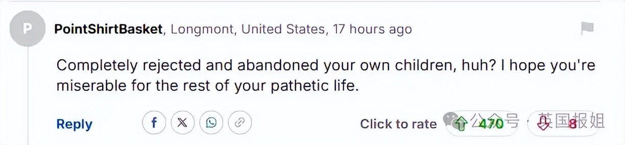 “彻底抛弃了自己的孩子?我希望你余生都活在痛苦之中。”