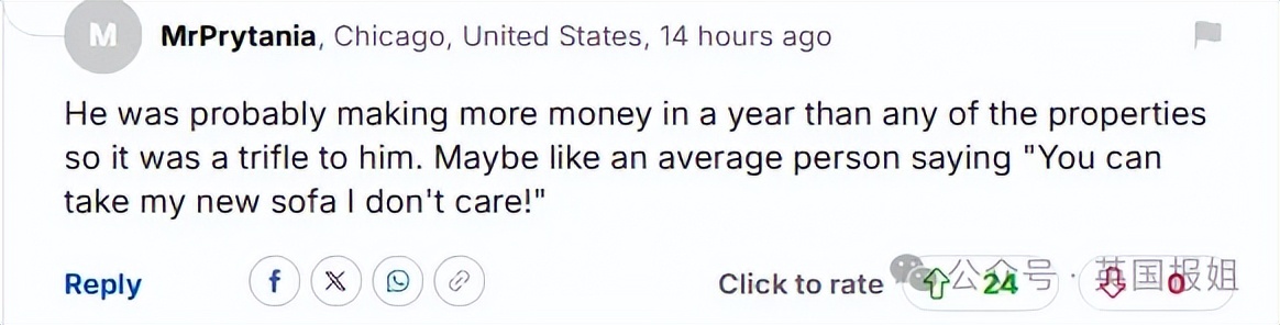 “他一年的收入可能比任何房产都多,所以对他来说这只是小事一桩。就像普通人会说‘你可以拿走我的新沙发,我不在乎!’”