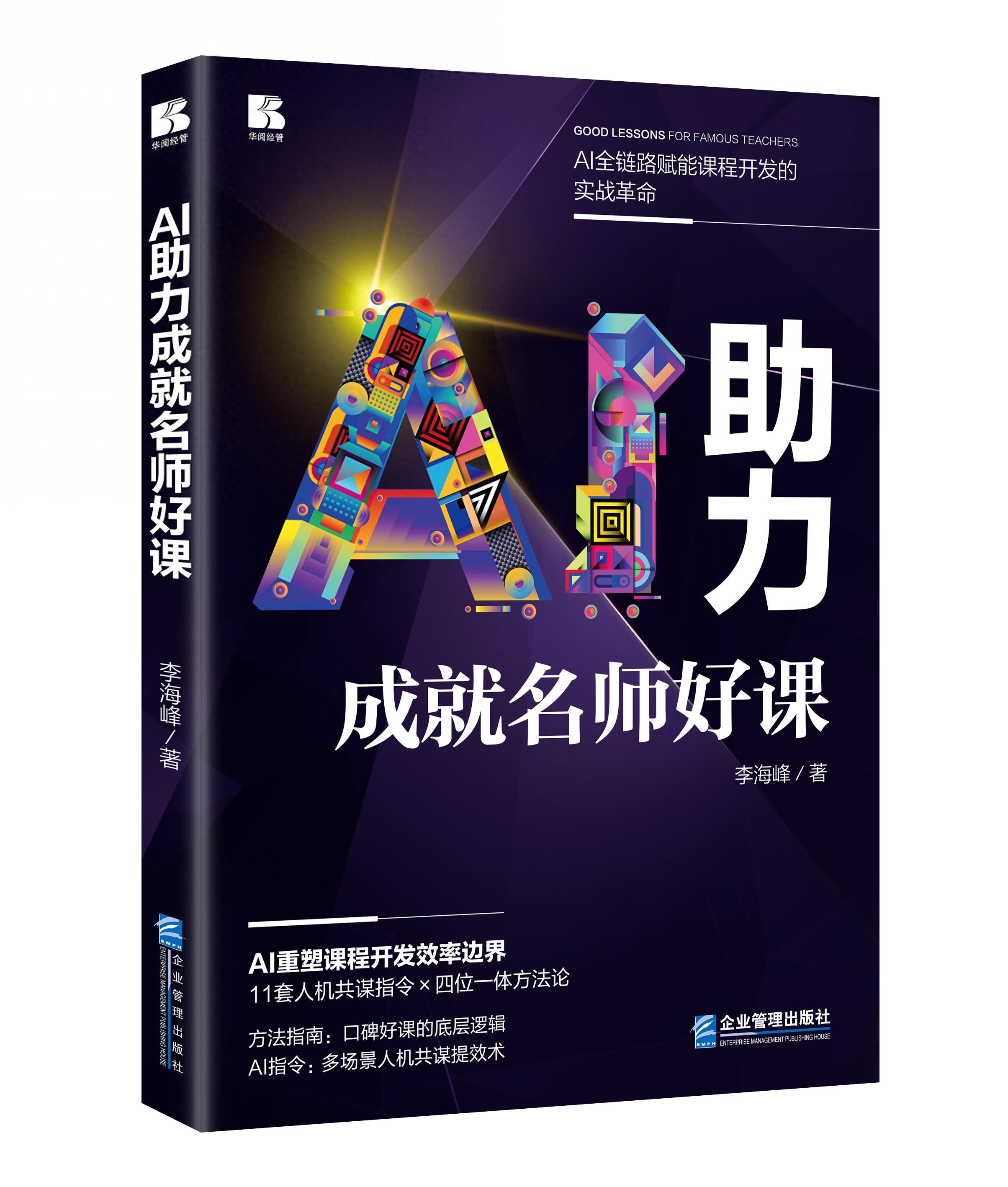 在教育行业飞速发展的当下,无论是在校教师想提升课堂质量,还是培训讲师想打造受欢迎的课程,“开发优质课程” 都是绕不开的核心难题。你是否也曾陷入困境:有丰富教学经验,却不知如何精准定位课程价值?耗时搭建课程逻辑,结果混乱无序让学生云里雾里?开发完课程内容,总觉得不够精炼、缺乏吸引力?别担心,李海峰老师全新力作《AI 助力成就名师好课》来了!它能打通课程开发 “任督二脉”,还借 AI 之力让开发效率翻倍,助你快速成长为 “名师”,打造人人称赞的 “好课”!