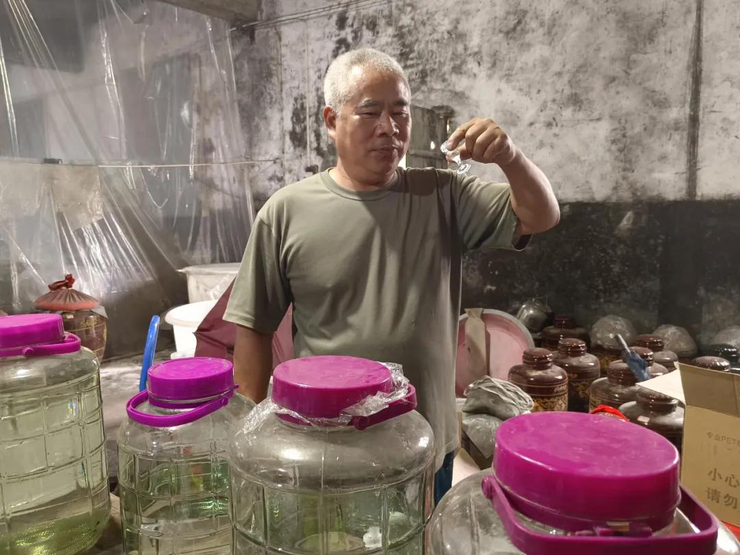2024年夏季的一天,笔者慕名来到饶湘酒坊。酒坊设在李端维先生的老家——广信区尊桥乡上乐村骆村湾组。办公区就在李家老宅,说是老宅,也是多年前在旧址上新建的洋楼。老宅旁不起眼的村道是著名的黄沙古道;老宅后是数百平方米的地窖区,用于储藏陈化历年生产的白酒,当时已存有10吨之多。生产区则在不远处的上潭(水库)湖畔。57岁的李先生鬓发皆白,那仿佛是追梦的勋章,令人肃然起敬。我们的交谈涉及方方面面,一个丰满的酒业人形象清晰起来。