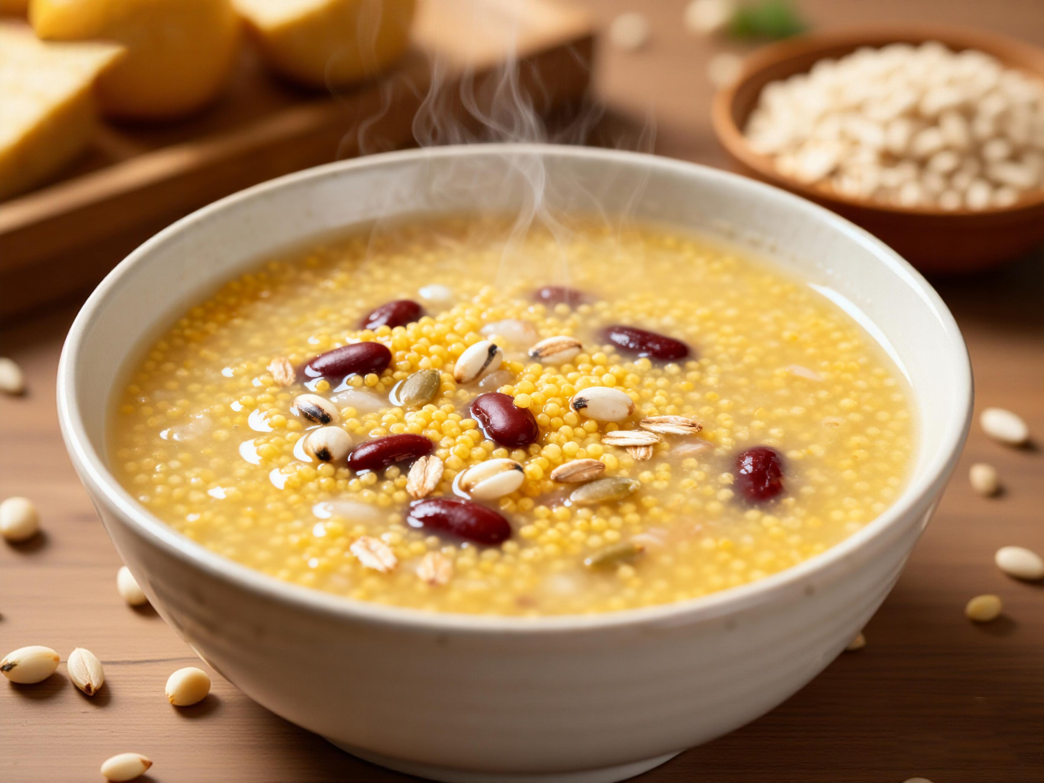 宜选用性质温和的杂粮,如大米、小米及适量红豆,并提前充分浸泡或打成粉状,以减轻消化负担。烹调时可搭配生姜、红枣等温中食材,以平衡食性。