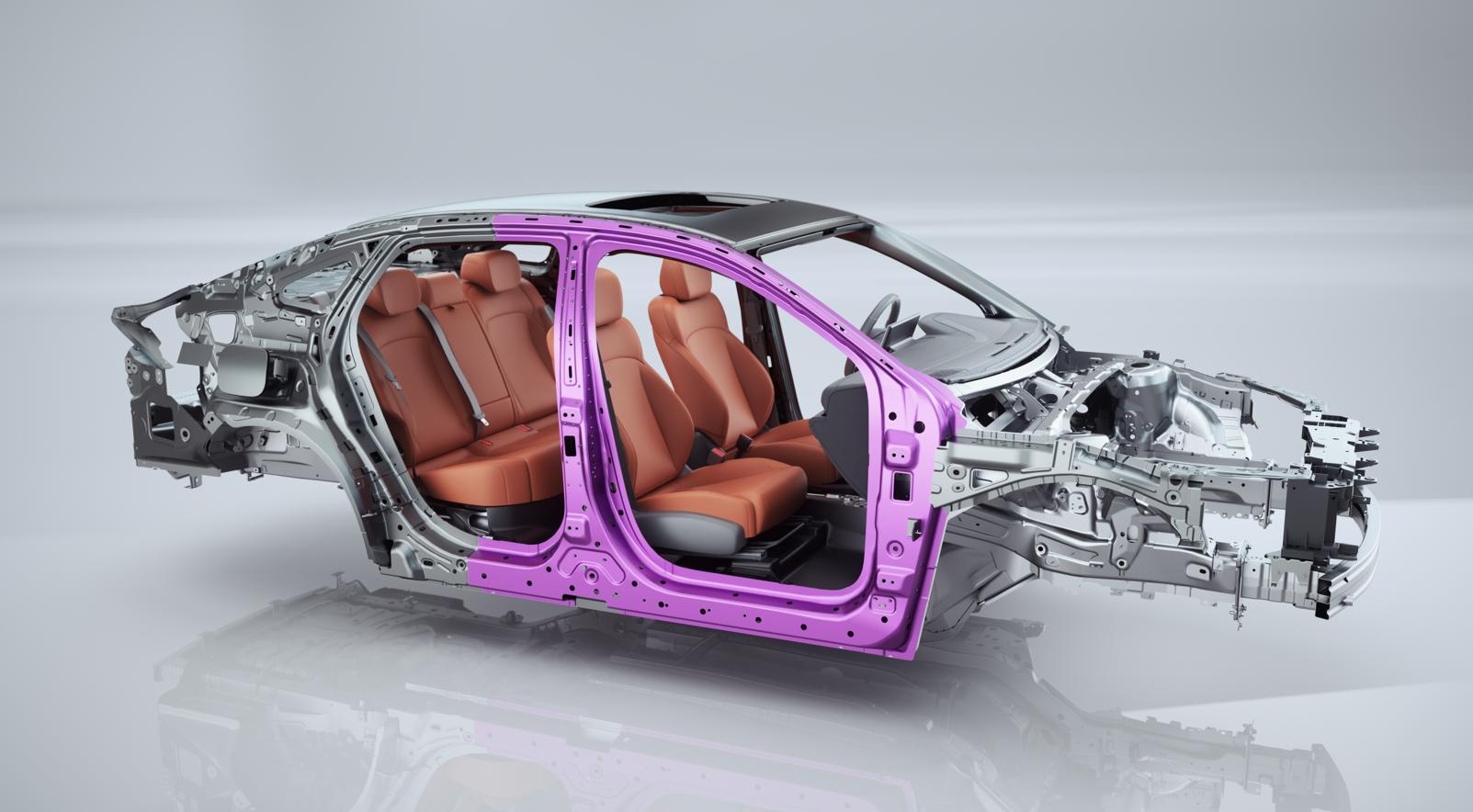 整车采用潜艇级笼式车身,高强度钢占比达70%,最高抗拉强度超1500MPa,车身扭转刚度高达26000N·m/deg,奠定驾驶安全基石。前机舱配备“B”型截面超高强钢防撞梁与240mm超长吸能盒,后防撞梁采用“C”型超高强钢+200mm渐变吸能盒,结合S形两折弯吸能设计与同级独有发动机下沉技术,在碰撞中有效引导能量传递,保障乘员舱完整。