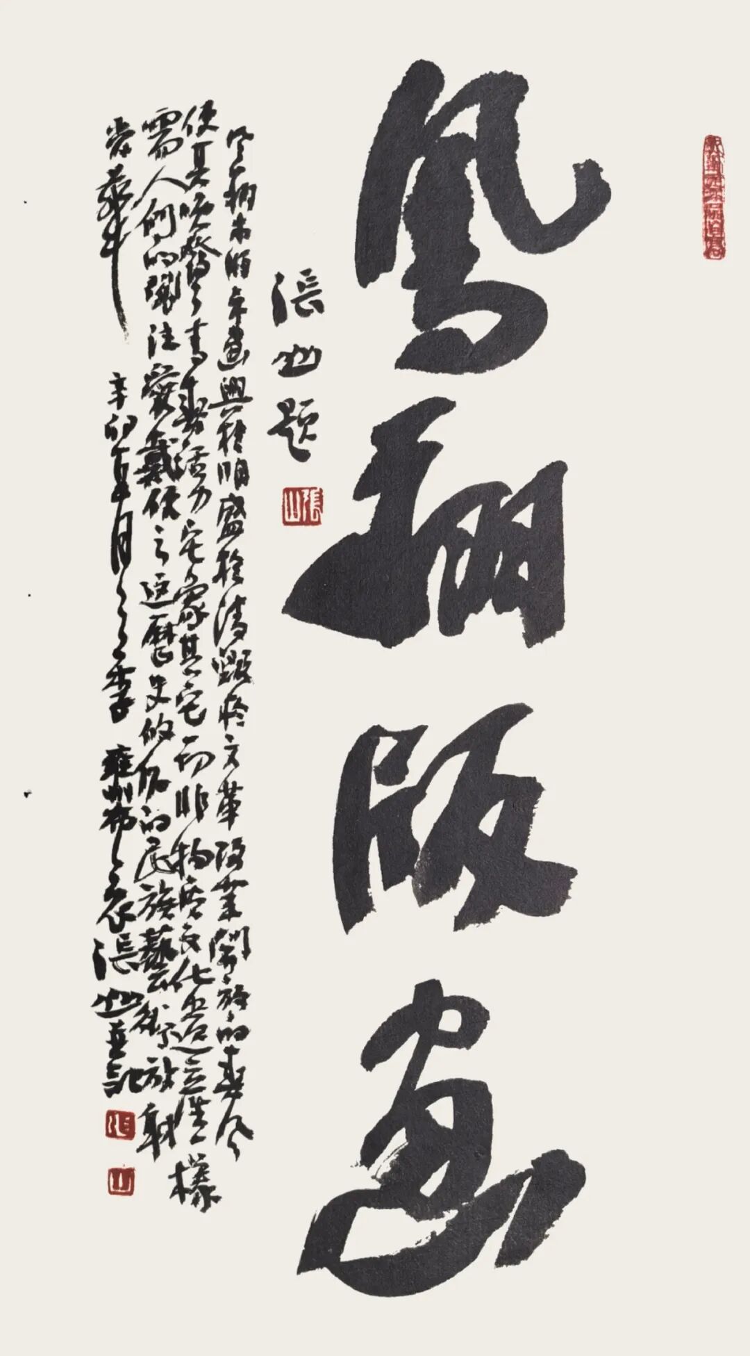 张山先生号长安墨客,客居古都西安,幼承家学,浸淫书画艺事四十余载。其书法初学唐楷,遍临欧颜柳赵诸家碑帖,筑基坚实;后溯二王风骨,兼取汉隶古朴、魏碑雄健,融篆隶之拙厚于行草之中,形成“筋骨内蕴、气韵贯通”的独特风格。笔下四字吉语凝练刚劲,名言警句意蕴悠长,笔墨间既含长安古都的雄浑气象,又蕴文人雅士的清雅情怀,作品多次入选全国及省市书画大展并获奖,被多家文博单位及海内外藏家收藏。先生于绘画一道亦有深究,尤擅山水、花鸟,师法自然而不拘泥古法,笔墨苍润灵动,构图疏密有致,既传承传统文人画的笔墨精神,又融入现代审美意趣,画面兼具形似与神髓,尽显东方美学的深邃意境。数十年来,张山先生潜心艺道,笔耕不辍,既注重传统文脉的传承,又勇于探索创新,兼以品性谦和,乐于提携后学,在书画界享有良好声誉。其作品以书载道、以画传情,既具艺术观赏性,又含文化厚重感,是当代书画界兼具传统功力与时代气息的实力派艺术家。