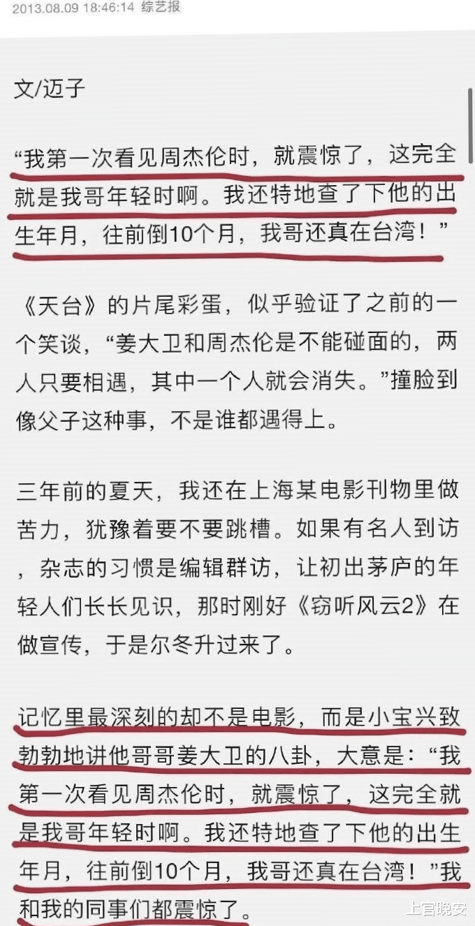 不怪尔冬升会起疑心,他俩是真的很像,脸型和五官都差不多,都是瘦削脸,高颧骨,小眼睛单眼皮,薄嘴唇,就连气质都是一样的桀骜不驯。姜大卫本人都说周杰伦某些角度确实跟他有点像。